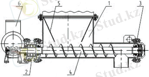 1-корпус; 2, 3-тірек; 4-бұранда; 5-уатқыш; 6-мотор-редуктор.