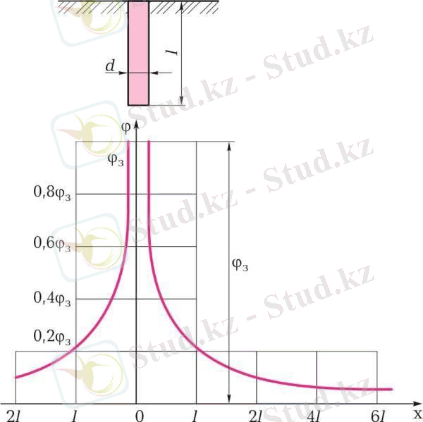 Ықтимал 𝜑 = 0 нүктесінде x = t қашықтықта жерге тұйықталу электродынан нүкте болады.