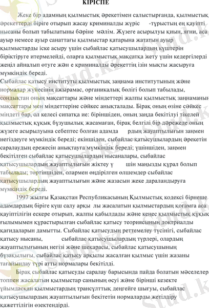 Тақырыбы: « Қылмыстық құқық бұзушылыққа сыбайлас қатысу түсінгі және белгілері »