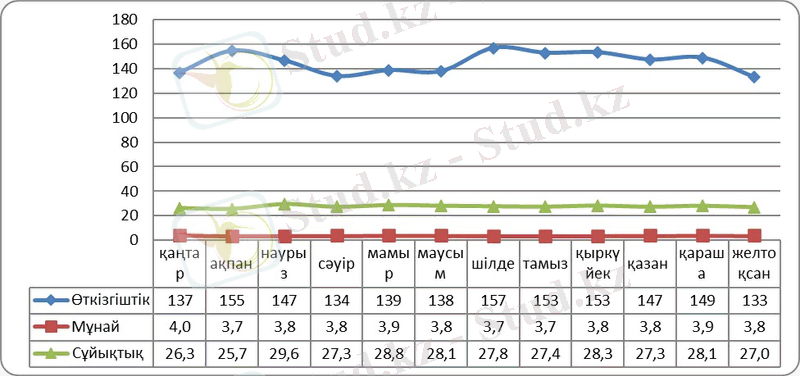 2012жылғы көрсеткіш бойынша бір су айдау ұңғымасының қабылдау көрсеткішінің ауытқуы тәулігіне 133-157м3. Бұл суретте көрсетіліп тұрғандай 1 жыл ішінде қабылдау көрсеткіші бір деңгейден өзгертіліп тұрғанын көрсетеді.