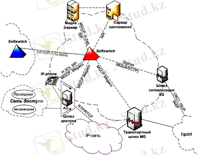 Оператор класымен сәйкес сенімділік параметрлері қамтамасыз етілуі керек. Сурет 1. 3-те SoftSwitch-тың типтік схемасы келтірілген. Бұл схема NGN желісінің барлық негізгі құрылымын қамтыған.