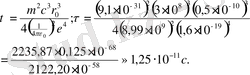 Осы теңдеуді r бойынша r 0 -ден 0-ге дейін және t бойынша 0-ден τ-ға дейін интегралдаймыз. Нәтижесінде электронның ядроға құлау уақыты мынаған тең болады: