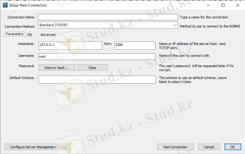 Connection name деп тұрған жерге біз өзіміздің диагграммызды қалай сақтадық, сол атты жазып кіреміз.