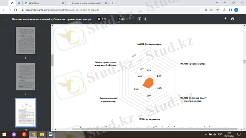 ДДҰ ұсынған ИААИБ жүйесінің алты компоненті Қазақстанда нысаналы жағдайдың тек 17, 9%-іне ғана сай келіп, тек ең базалық түрінде ғана кездеседі. Сонымен қатар, бағыттардың (блоктардың) бір де біреуі бойынша ДДҰ ұсынымдарына тіпті 25%-ке сәйкес келмейді.