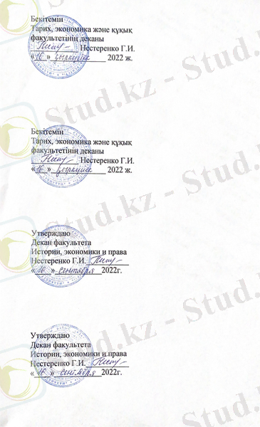 Қазақстан Республикасы тарихы кафедрасының «09» қыркүйек 2022 жыл.