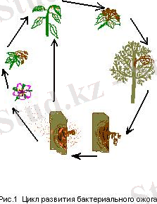 2-сурет. Аурудың қоздырғышы зақымдалған өсімдікте қыстайды. Көктемде ағаш сөлдері жүре бастағанда, бактериялар сөлмен бірге ағаштың барлық мүшелеріне таралады.