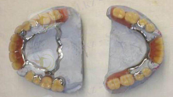 2) Базистен және жасанды тістер орнатылатын жасанды қызыл иектен