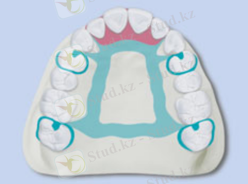 - негіз шегін, таңдайдағы және жақтың альвеолалық өсіндісінде доғаның орнын белгілеу;