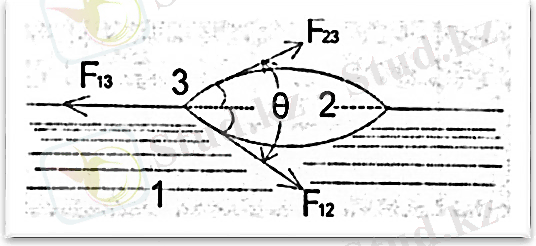 F 23 = σ 23 dl - 2-ші сұйық 3-ші газдың шекарасындағы керілу күші. F 13 =