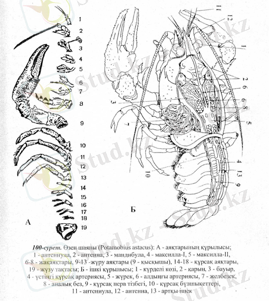 Дене құрамына кіретін сегмент саны, басқа буынаяқтылармен салыстырғанда алуан түрлі: 5-8-ден 50-ге дейін.