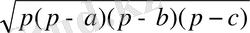 Мұндағы a, b, c - үшбұрыштың қабырғалары, р - жарты периметрі : p = ( a + b + c ) / 2. Есепті шешу үшін үшбұрыштың ауданын табу программасын екі рет пайдаланады. Бұл есепті шешудегі негізгі және көмекші программа төмендегідей болады :