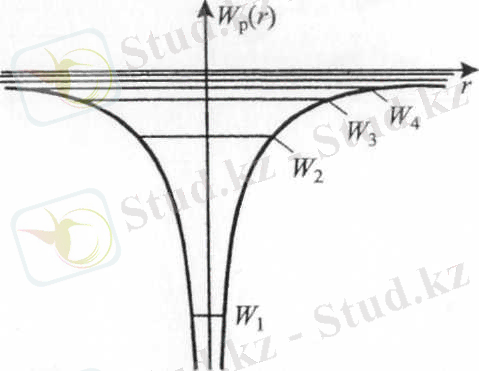 Суреттен сутегі атомындағы электронның энергия спектрі W < 0 болғанда дискретті, ал W > 0 болса, үздіксіз болатындығын және энергия өсіп нөлдік мәнге жақындаған сайын олардың арақашықтығының азаятындығын көреміз.