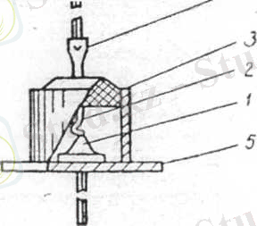 56-суретте жазық диодтың құрылысы көрсетілген. Онда металл корпус ішінде электронды өткізгішті германий кристалы бар. Оған индий балқытылып құйылған, ол германийге кірігіп, шала өткізгіштің кемтіктік типінің аймағын жасайды.