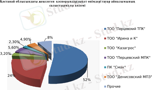 Жоғарыда берліген 1 кестенің мәліметтері республика бойынша ет және шұжық өнімдері өндірісінің көлемі соңғы жылдары жоғары деңгейде өндірілгенін байқатады. Яғни республика бойынша барлық ет өнімдері 2006 жылы 2006 жылмен салыстырғанда 22, 3 пайызға өскен. Соның ішінде ет және еттен жасалған аралық тамақ өнімдері 2010 жылы 2002 жылмен салыстырғанда 1, 4 пайызға, ал шұжық өнімдері 217, 6 пайызға жоғарылаған. Демек, жалпы республика бойынша шұжық өнімдері өндірісінің деңгейі қарқынды дамып келеді деп қорытынды шығаруға болады. Яғни, бұл еліміздің тұрғындарының ет және шұжық өнімдеріне деген сұранысының жоғарылағанын көрсетеді.