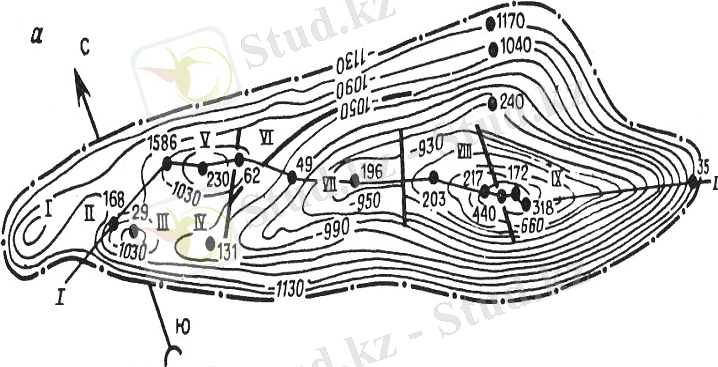 Д-сурет. Өзен кен орнының XIII горизонтының құрылымдық картасы