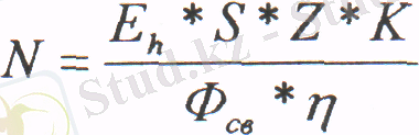 η - УСП 35 түрдегі жарық көздер үшін өте қолайлы қатынас шартынан анықталатын жарық көздер ретінің саны, ең қолайласы 1, 4 - ке тең. Пол үстіндегі жұмыс бетінің деңгейі 0, 8 м- ге тең.