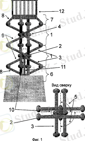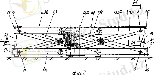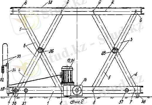 4-суреттегі жүк көтергіш, негізінде қозғалмалы механизім орнатылған әр элемех Х- бейнелі тор түрінде орындалған. Келтіру механизімі элементтің структуралық торларымен полиспас түрінде байланыс жасаған иілгіш элемент бір соңы келтіру механизімінің барабаннан, ал екінші жағы -негізге бекітілген.