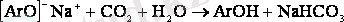 1. Фенолдар спирт немесе судан гөрі едәуір үлкен қышқылдық көрсетеді, алайды қышқыл есебінде олар көмір және карбон қышқылдарынан әлсіздеу. Мысалы, сірке қышқылының диссоциациялану константасы 1, 8∙10-5, көмір қышқылынікі 4, 8∙10-7, көгерткіш қышқылдікі 7, 2∙10-10, фенолдікі 1, 3∙10-10 және судікі 1, 8∙10-16. Сондықтан фенолдар күйдіргіш натрдың ерітіндісімен әркеттесетін феноляттар түзеді, бірақ натрий карбонатынан СО2 ығыстырып шығара алмайды. Керісінше, фенолдарды феноляттардың ерітіндісінен көмір қышқылы ығыстырып шығарады: