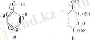 Спирттермен салыстырғанда фенолдардың үлкен қшқылдығын оттек атомының бөлінбеген электрондар жұптарының ядроның электрондарымен әрекеттесуі арқылы түсіндіруге болады. Мұндай қосарлану оттек атомындағы электрондар тығыздығын азайтады және спирттердегіден гөрі фенолдарда протонның үлкен қозғалтқышын туғызады. Фенолда электрондық тығыздықтың таралуы (Б) формуласында көрсетілген.