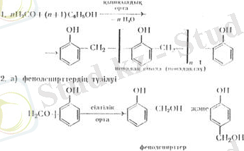 Әдеттегі температурада молекуланың фенол мен альдегидтің конденсациялануы арқылы өсуі біршама сызықтық бағытта жүреді. Қыздырғанда тармақталған молекулалар түзілетін конденсация басталады. Ақырғы өнім ерімейтін болып шығады.