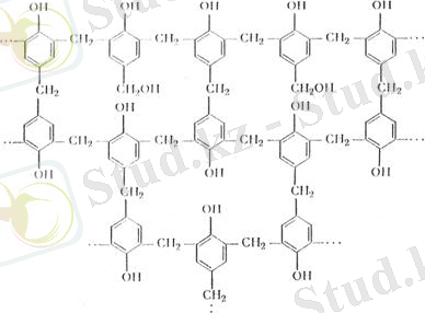 б) резолды әрі қарай конденсациялау (қыздырумен) үш өлшемдік тор көзді (кеңістіктік) ерімейтін полимердің (резит, бакелит С) түзілуіне апарады:
