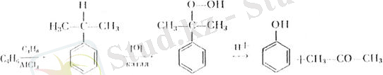3. Гидроасқынтотықтардың ыдырауы. Фенол кейбір алкилбензолдардың асқын тотықтарының қышқылдық ыдырауы арқылы алынады. Мысалы, қумолдың гидроасқынтотығы ацетон мен фенолға ажырайды.