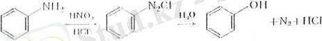 4. Біріншілік ароматик аминдерге азотты қышқылдың әрекеті. Аралық өнімдер есебінде бұл процеске ароматик диазоқосылыстар алынады: