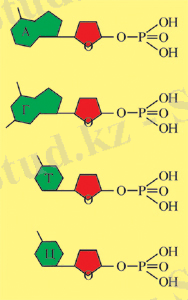9-сурет. Тірі табиғатта барлық ДҢҚ-ны құрайтын төрт нуклеотид