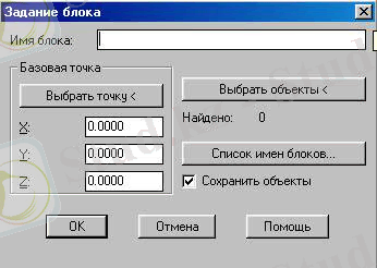 - базалық нүктені көрсету керек. Ол ереже бойынша блоктың сол жақ төменгі бұрышында орналасқан. Ол үшін Base Point тобының командаларын қолдану қажет. Базалық нүктені X, Y, Z жолдары арқылы пернетақтадан немесе Select Point тышқан - батырмасының көмегімен көрсетуге болады. Бұл нүктені блокты сызбаға қоятын тұтқа ретінде қарастыруға болады. Блокты орналастыру кезінде осы нүктені айналдыруға болады.