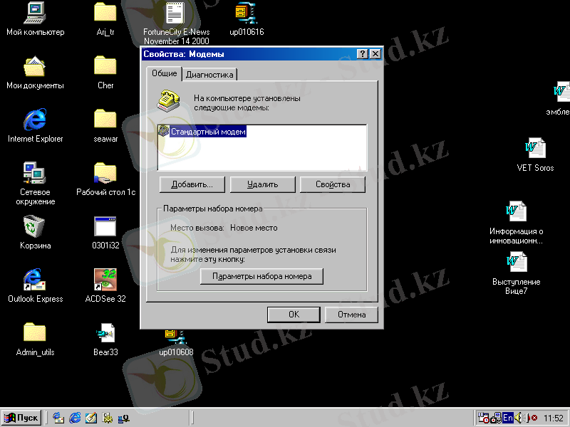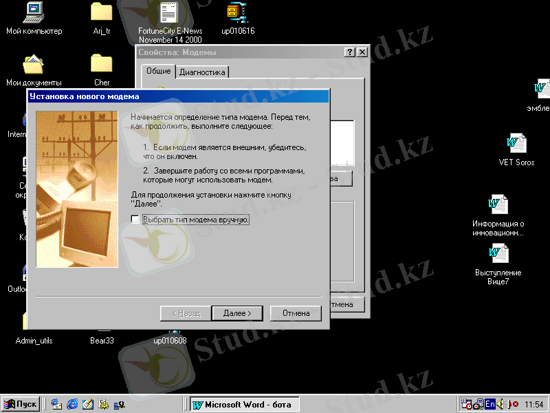 автоматты түрде жүктеледi. Ашылған Свойства: Модемы хабар алмасушы терезесiнде Мастер установки жiберу үшiн