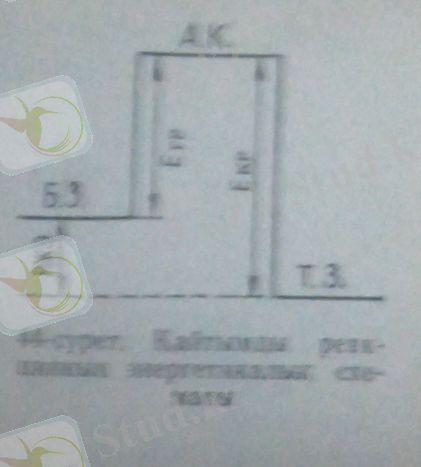 Активтелген комплекс (АК) тура реакция жүргенде де, кері реакция жүргенде түзіледі(44 - сурет) . Энергия жағынан бастапқы заттармен(Б, З) салыстарғанда активтелген комплекстің (АК) энергиясы тура реакцияны активтеуге кеткен энергияға (Е тр) артық болады, түзілген заттармен (ТЗ) салыстырғанда кері реакцияны активтеуге жұмсалған энергияға (Екр) артық болады. Тура реакция мен кері реакцияны активтеуге кеткен энергиялардың айырмасы осы реакцияның жылу эффектісіне (РЖЭ) тең болады.