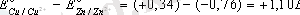 Металдардың қалыпты электродтық потенциалы белгiлi болса кез келген екi металдан тұратын гальвани элементiнiң электр қозғаушы күшiн (э. қ. к) есептеп шығаруға болады. Мыс;