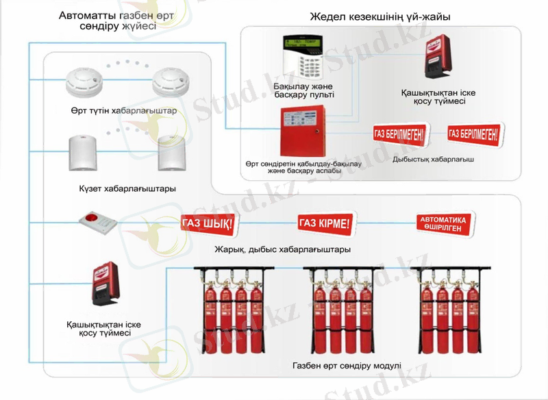 Газбен өрт сөндіру қондырғысының қағидатты сызбасы 1-суретте келтірілген.