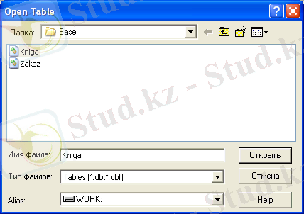 Содан соң С:\Base каталогында құрылған кесте ( Kniga. db ) аты анықтағаннан кейін Kniga. db файлы құрылады.
