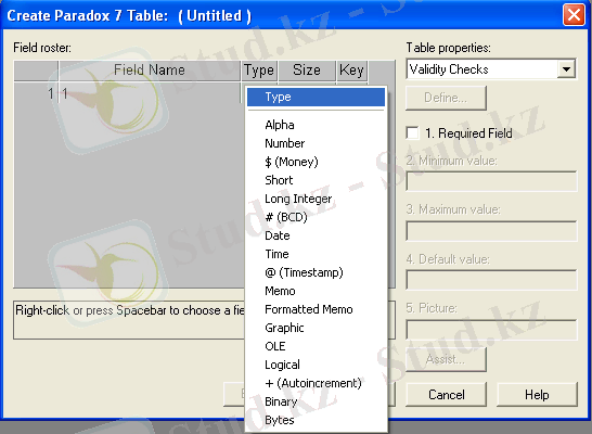 СУБД Paradox барлық мүмкін типтері 2-суретінде келтірілген.