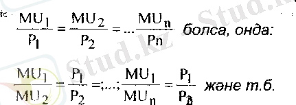 Сонымен, ақша бірліктерінің шекті пайдалылығы тепе-теңдікте пайдаланудың түрлі варианттарында тең. Жалпы түрінде былай жазуға болады: