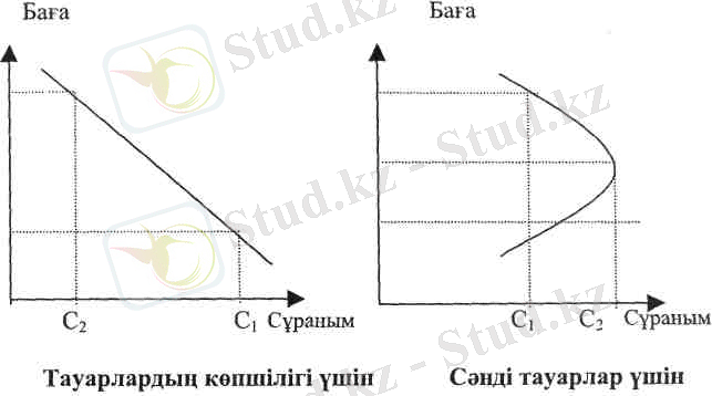 Тауарлардың көпшілігіне баға өскен сайын сүраным көрсеткіші иілген немесе түзу сызық бойымен төмен қарай үмтылады. Сәнді тауарларды алатын болсақ, онда бүл тәуелділік әлдеқайда күрделі болып келеді.