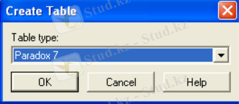 Table алғаннан кейін бізге мынадай сұхбат терезесі ашылады. Сырғымалы тізімнен МҚБЖ таңдап алуға болады, содан кейін Paradox7-ні таңдап алдым.