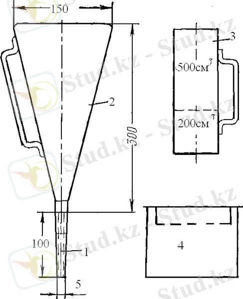 - түтік; 2- варонка; 3- өлшеу ыдысы; 4-сүзгі.