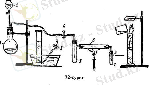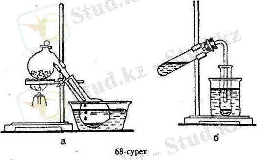 Құрал-жабдықтар. Вюрц колбасы, белгіш құйғыш, кристалдағыш, 500 мл-лік цилиндр, спирт шам, темір штатив, пробиркалар, химиялық стақандар.