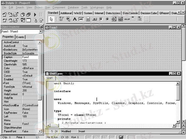 DELPHI ұсынатын бірқалыпты Unit1 және Project1 орнына, файлдарға мағынасы бар ат беруге тырысыңыздар.