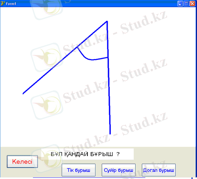 Сонымен қатар компьютерлік бағдарламаның келесі режімінде таныстырылған фигуралар туралы ұғымдарды, олардың түрлерін, айырмашылықтарын бекіту мақсатында келесі терезелер ұсынылады. Бұрыш түрлері бағдарламасы бойынша навигациялау үшін пайдаланатын батырмалар ұсынылған.