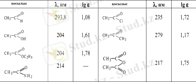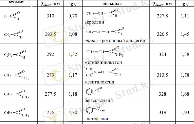 Кесте 3. Кетондар мен альдегидтердегі n - π* ауысулар.