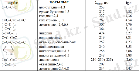 Тарау 1. Органикалық қосылыстардың негізгі класстарының жұтылу спектрлері. Қанықпаған көмірсутектер.