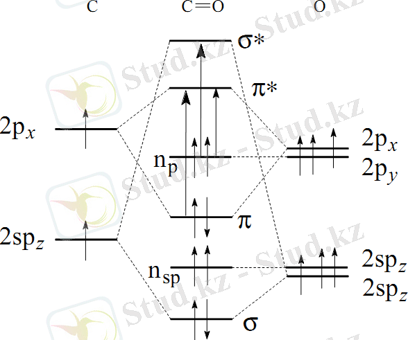 Сурет 1. С=О тобының энергетикалық деңгейлерінің схемалары.