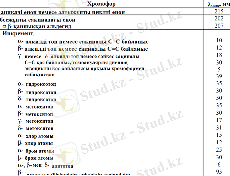 Сонымен, α, β қанықпаған альдегидтер немесе кетондардың болуы қосылыстың УК спектрі арқылы анықтауға болады.