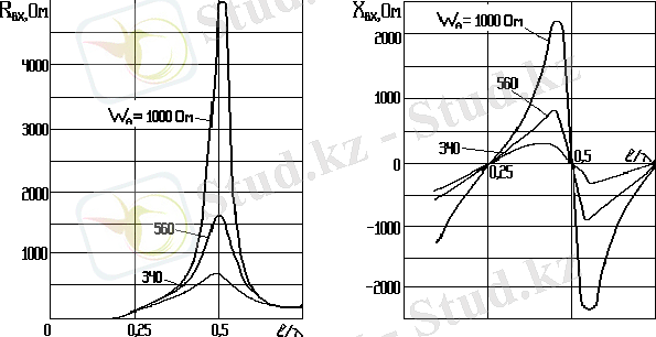 2-сурет. Симметриялы вибратордың кіріскедергісінің активті және раективті құраушыларының толқынды кедергісінің әртүрлі