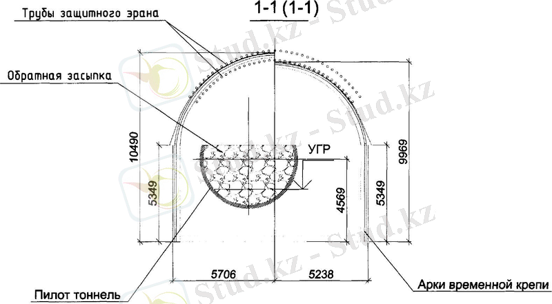 Бүйір қабырғада уақытша бекітпе ретінде арматуралық арка құралып, кенжардың күмбез бөлігінде 300 мм қалыңдықпен қаптама жасалады.