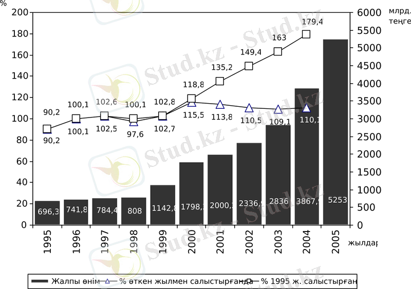 Қазақстан, қоғамдық өмірдің шешуші саласы - экономикада, әлеуметтік және саяси жаңару жолында сенімді қадам жасап ілгерілеп келеді. Ел экономикасы 2001 ж. бастап жылына орта есеппен 10%-ға өсіп отыр. Соңғы жылдары әлеуметтік-экономикалық әлеуеттің негізін құрайтын өнеркәсіп өндірісі де тұрақты даму үстінде. Егер 1995-2005 жж. аралығында өнімнің жылдық өсуі 5%-ды құраса, соңғы 5 жыл ішінде 11, 8%-ға жетті (1-сурет) .
