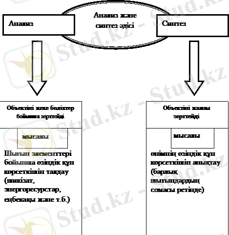 Анализ және синтез әдістері әлеуметтік - экономикалық құбылыстарды жеке бөліктер бойынша немесе біртұтас зерттейді. Мысалы, өндірістің бір күндегі табыс мөлшерін анықтайтын бұл - анализ, ал ай сайынғы табыс мөлшерінің жиынтығын анықтайтын бұл - синтез (1. 5 сурет)